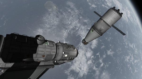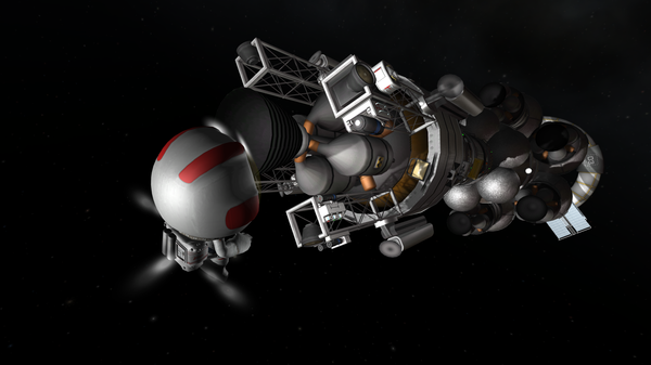 Джеб улыбался, будучи довольным от успеха обеих миссий. Да и свой корабль он любил. Через несколько секунд Джебидайя включил двигатель на несколько секунд и, по завершении прожига, развернул корабль как и обещал, попутно сверяя траекторию сближения. Недзер с интересом прильнул к иллюминатору.
