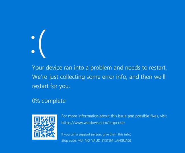 Данный ключ уже недействителен, но при добавлении через slmgr, после перезагрузки появляется BSOD, который будет появляться всегда, с одной ошибкой: MUI_NO_VALID_SYSTEM_LANGUAGE.
