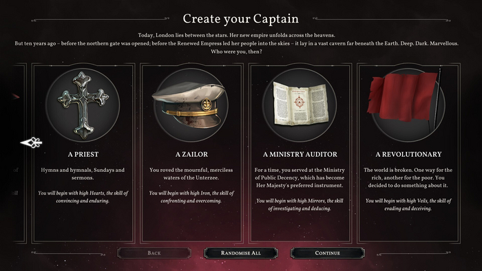 Что ещё интересного. В описании Амбиций присутствует предложение захватить собственный трон, что в финале мутировало в настолько иную глобальную цель, что даже сложно представить. И слегка всё же жаль, что нам не дадут построить аналог Эстиваля из Sunless Sea где-нибудь в Высоких Пустошах. Это было бы роскошно.