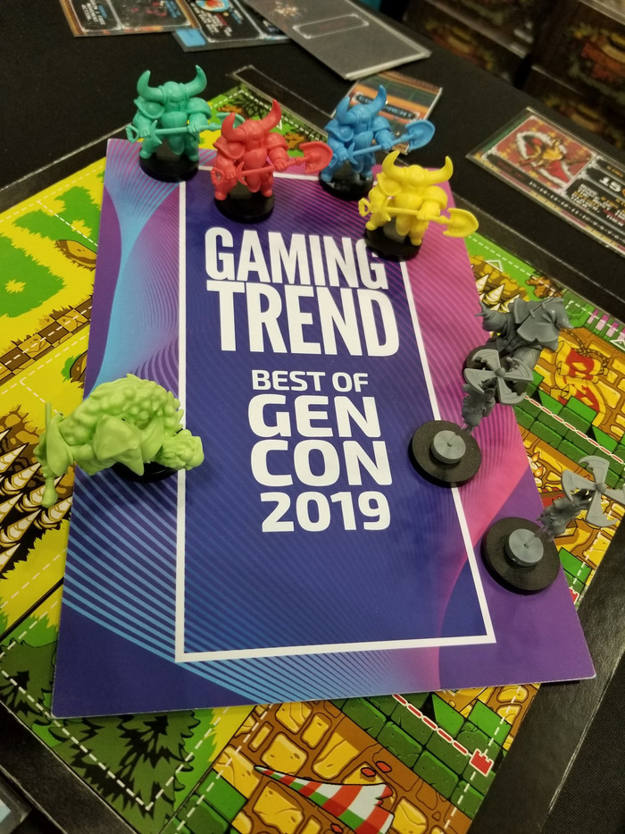 Действие происходит на поле из четырёх вертикальных плиток (ака тайлы), на каждой из которых по четыре клетки, итого клеток шестнадцать. Самый смак геймплея в том, что после каждого раунда (то есть, после хода всех игроков и врагов) плитки сдвигаются влево, то есть, самая левая уходит в небытие, а справа встаёт новая, из колоды. Все и всё на съехавшей плитке исчезает. На плитках периодически спавнятся знакомые по видеоигре враги, а также, выкладываются кучки земли, скрывающие различные приятности. Подробнее о геймплее можно почитать в правилах, англоязычных (есть на странице КС, но предупреждаю: сейчас там белый текст на чёрном фоне и дикое занудство), либо в моём переводе (сделан по версии без оформления под игру, и ещё был приложен максимум усилий для уменьшения коэффициента занудства, а также, там исправлена пара косяков):