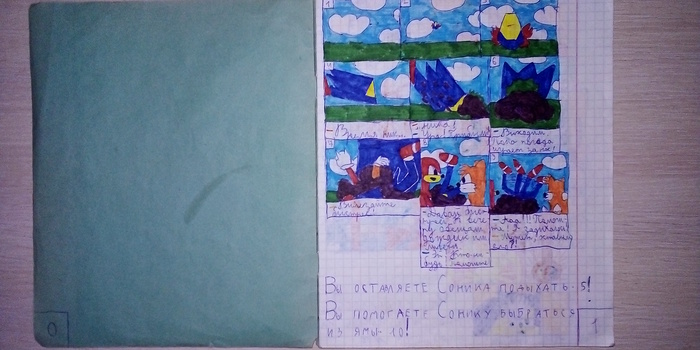 Это буйство красок! Это музыка! Эта динамика! Эта скорость (особенно во второй зоне)! Я просто влюбился в эту игру и возможность управлять этим чудом. Игра оказала на меня огромное впечатление, замешанное в целом на восхищении и радости. Затем в 1998 году за отличное завершение первого класс мне и самому подарили коробку с Sega Mega Drive. Не сразу, но ко мне цепкие детские руки всё же попала копия именно второго Соника и я стал удовольствие тратить свободное время, играя в игры на разных картриджах, ставя игру по Сонику в число любимых. Затем однажды мой одноклассник принёс в качестве домашнего что-то типа открытки с Соником, в то время как я, если не ошибаюсь, сделал открытку с Альфом, любителем кошек и майонеза. Однако такая мелочь, как срисованный другом персонаж с обложки коробки под картридж, зажгла в моей голове искру простой идеи: этого персонажа - любого персонажа - можно вынести за пределы телевизора и приставки. Любого персонажа можно нарисовать. И я начал рисовать. Я стал брать тетради в клеточку, обычную шариковую синюю ручку и фломастеры и рисовать. Все мои знания о вселенной по Сонику ограничивались буквально играми сегавскими играми и информацией и книжки кодов и паролей и, по-идее, прохождений.