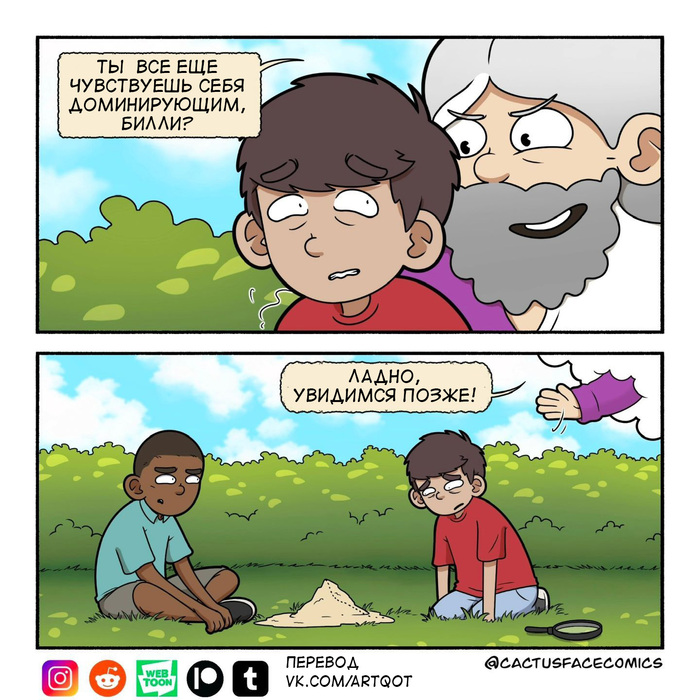 357 pikabu4 Авторские переводы Комиксы Серия KINGDOM FOLLY Доминирующий вид 1 год назад https://vk.com/artqot Показать полностью 3 [моё] Kingdom Folly Перевел сам Комиксы Бог Люди Дети Насекомые Поучительно Доминирование Длиннопост 8 4 Ещё 0