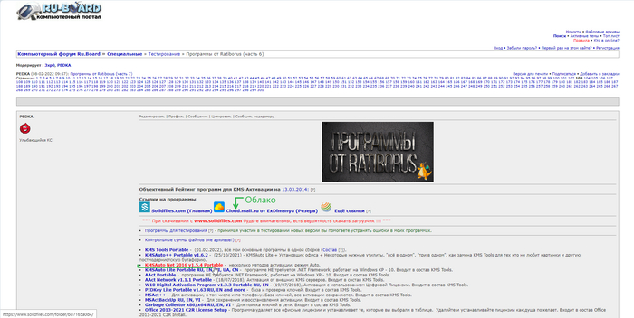 (с сайта у вас скорее всего не получится скачать, часто ссылка на хранилище файлов не работает, поэтому качайте с облака)