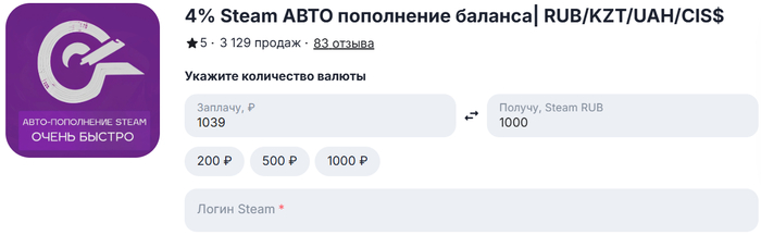 Минусы: если раньше вы не пользовались «Стимом», не пополняли его и соответственно ничего не покупали более года, или у вас слетел Steam Guard, воспользоваться ТП просто не получится.