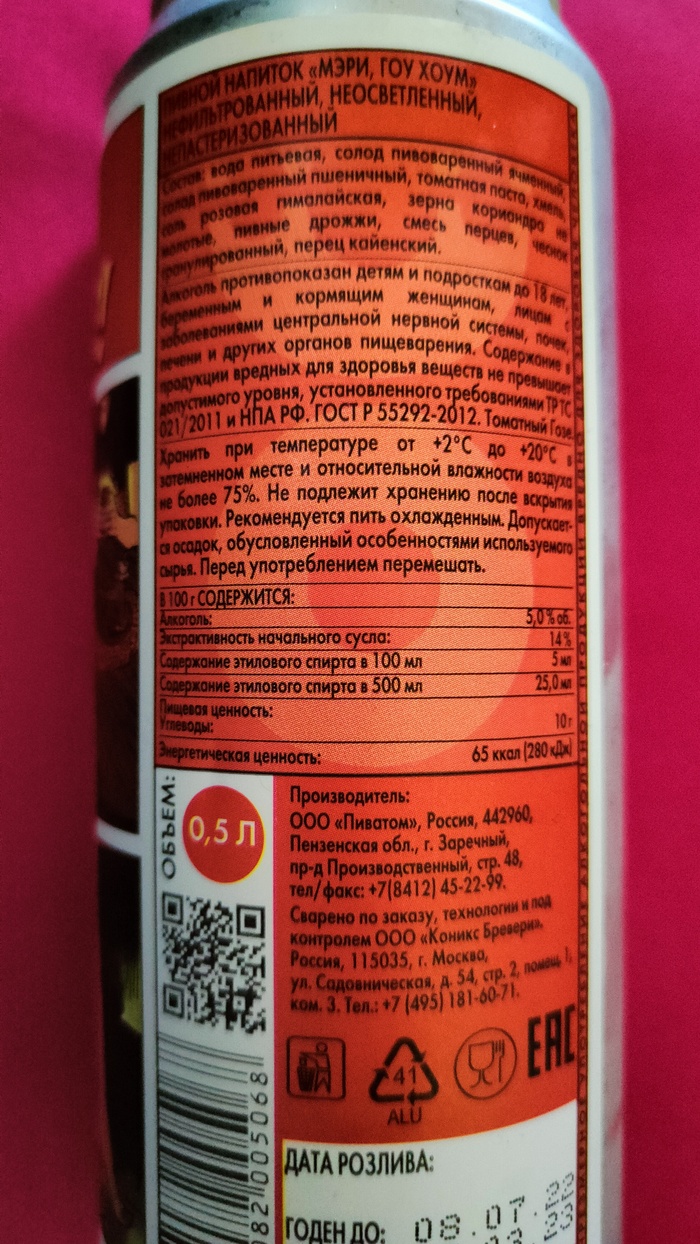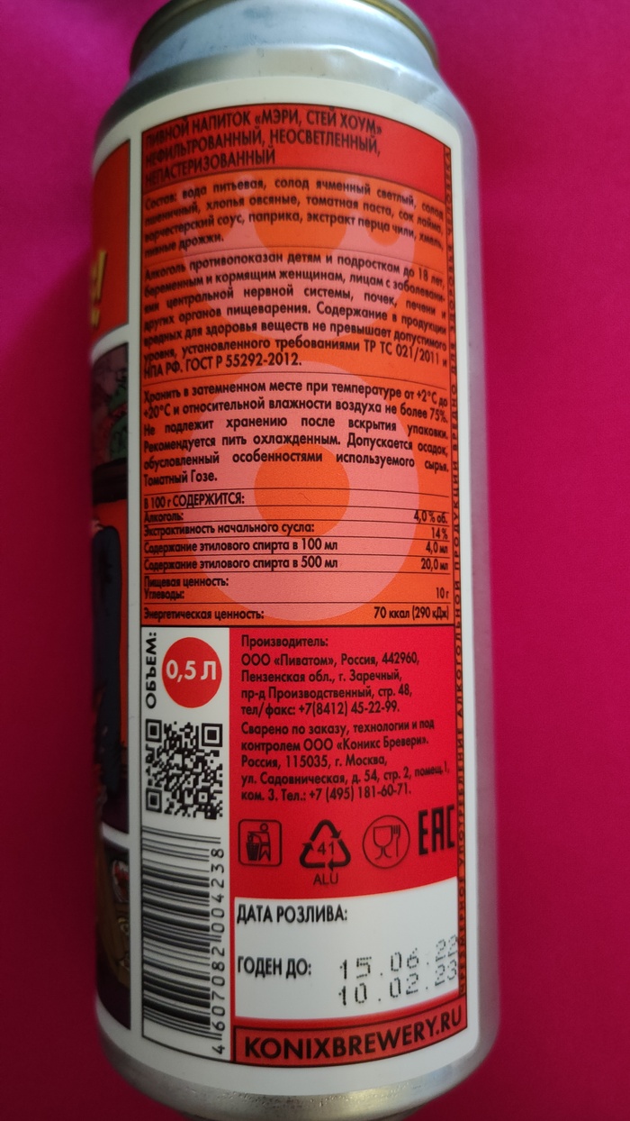 Состав: вода, солод (ячменный, карамельный, жжёный), овсяные хлопья, хмель, дрожжи, лактоза, ароматизаторы "Сливки", "Клубника".