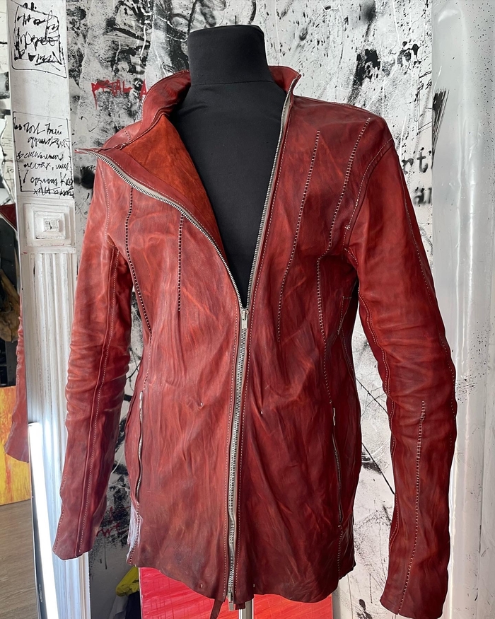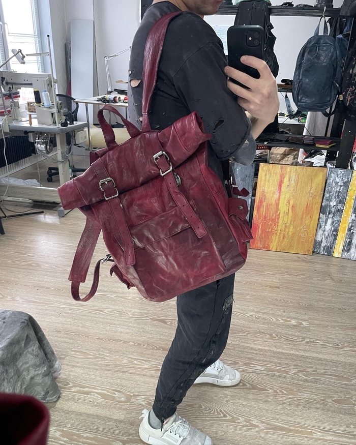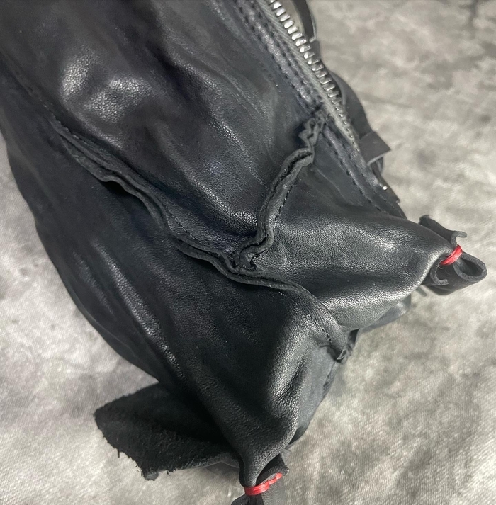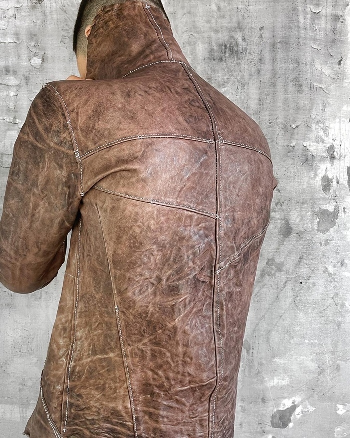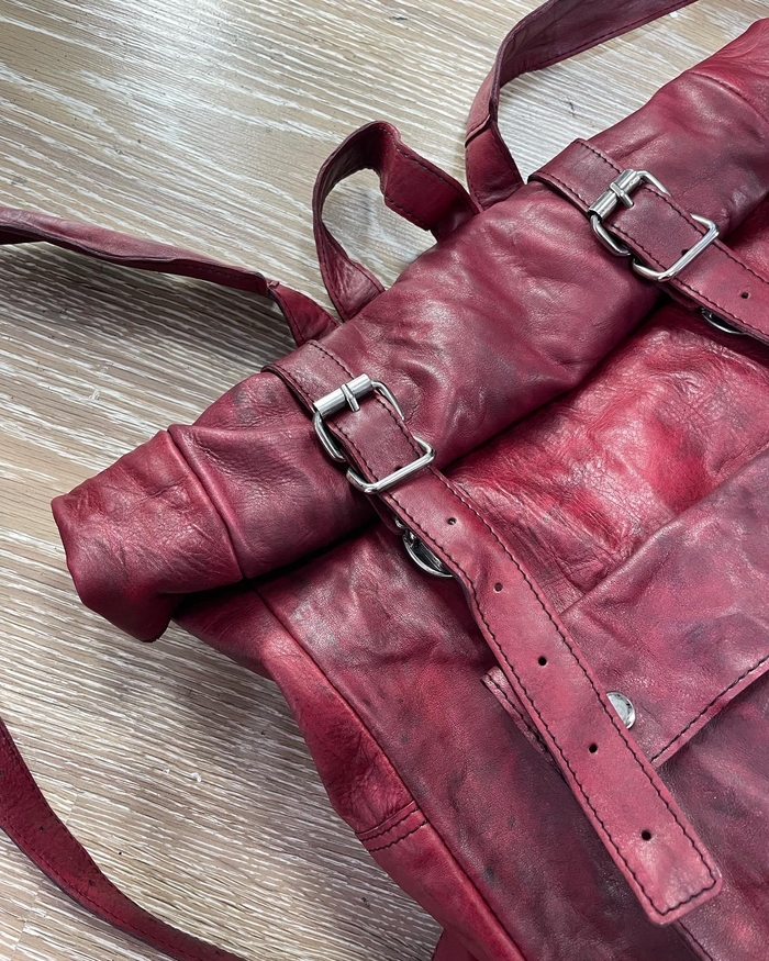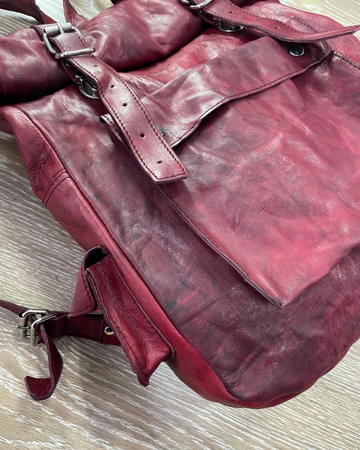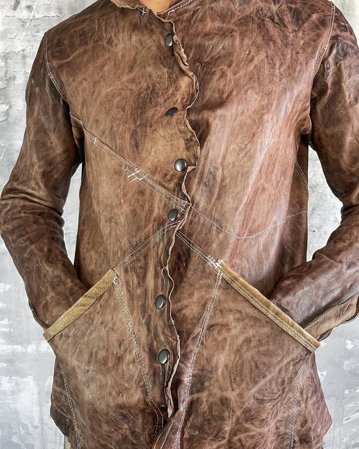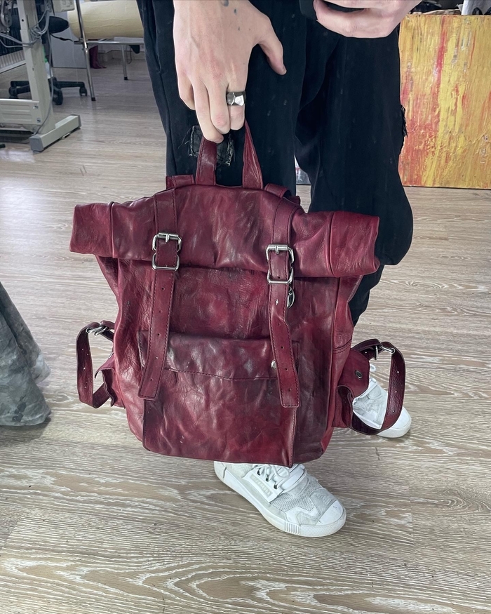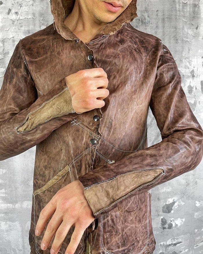натуральная кожа растительного дубления, тончайше - мягчайшей выделки в купе с граффити краской некоторого дорого бренда.