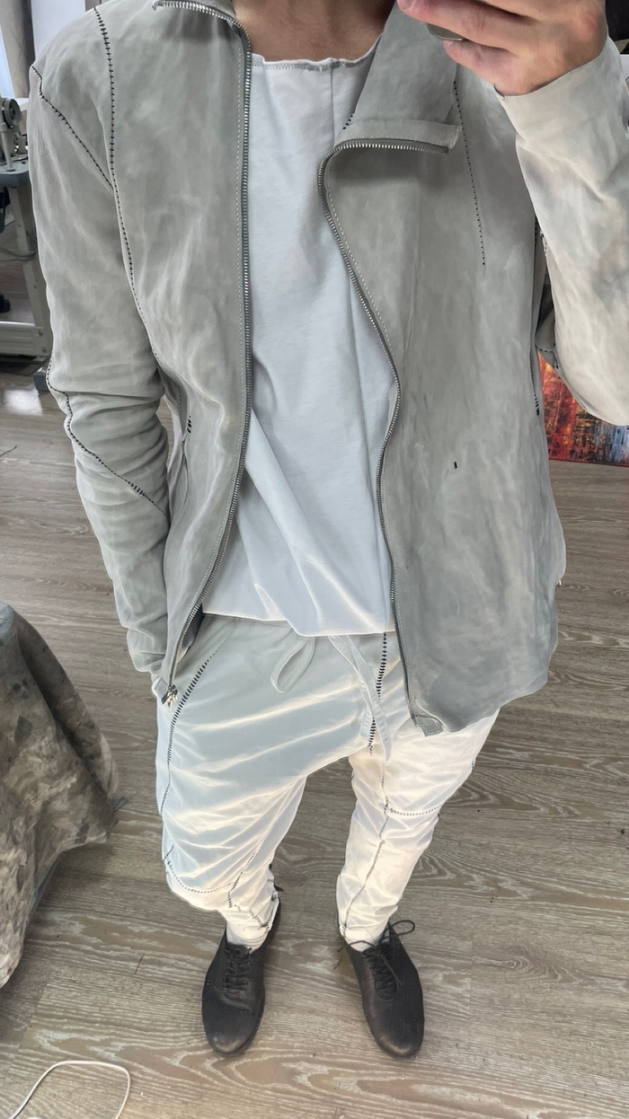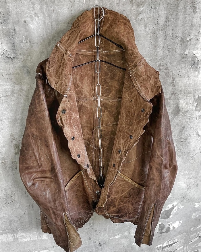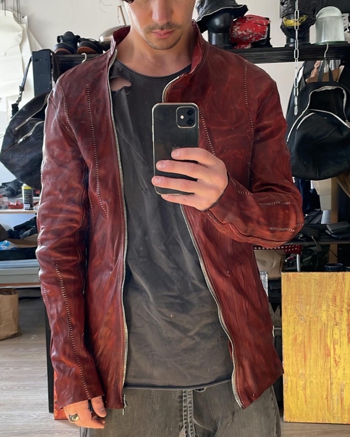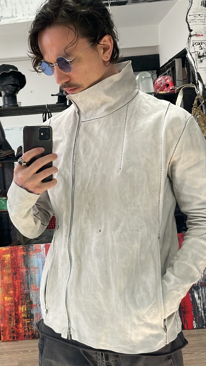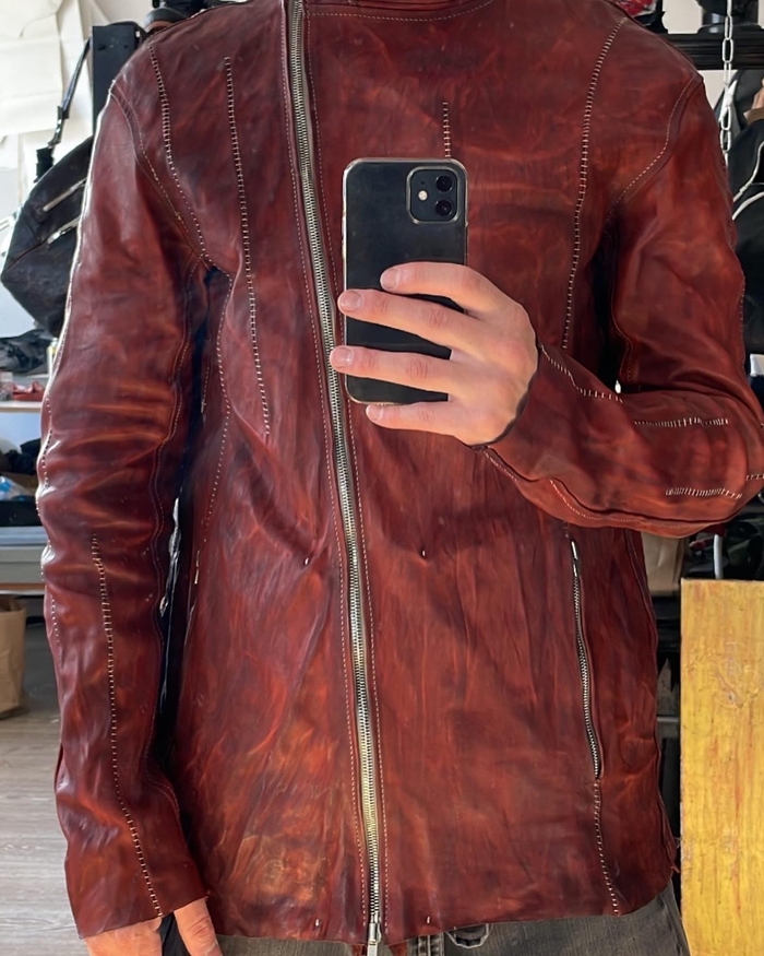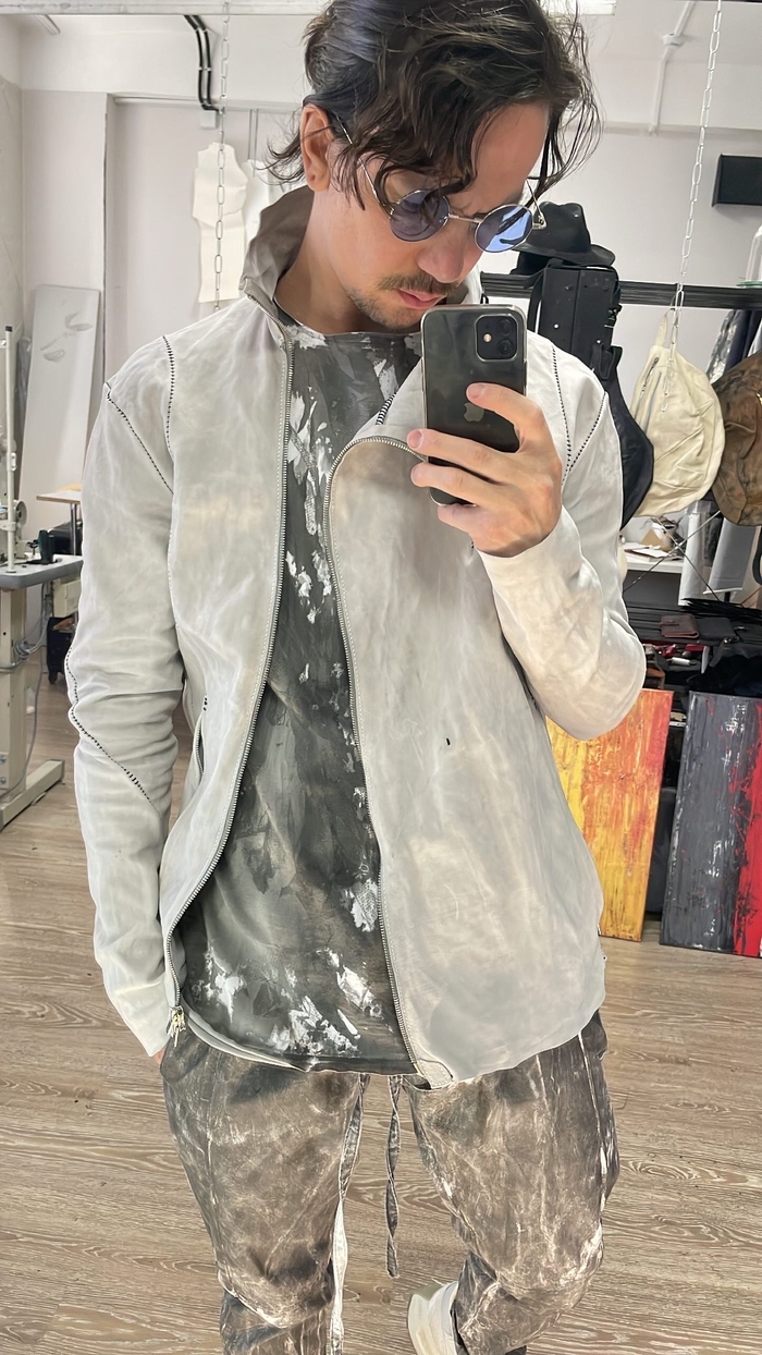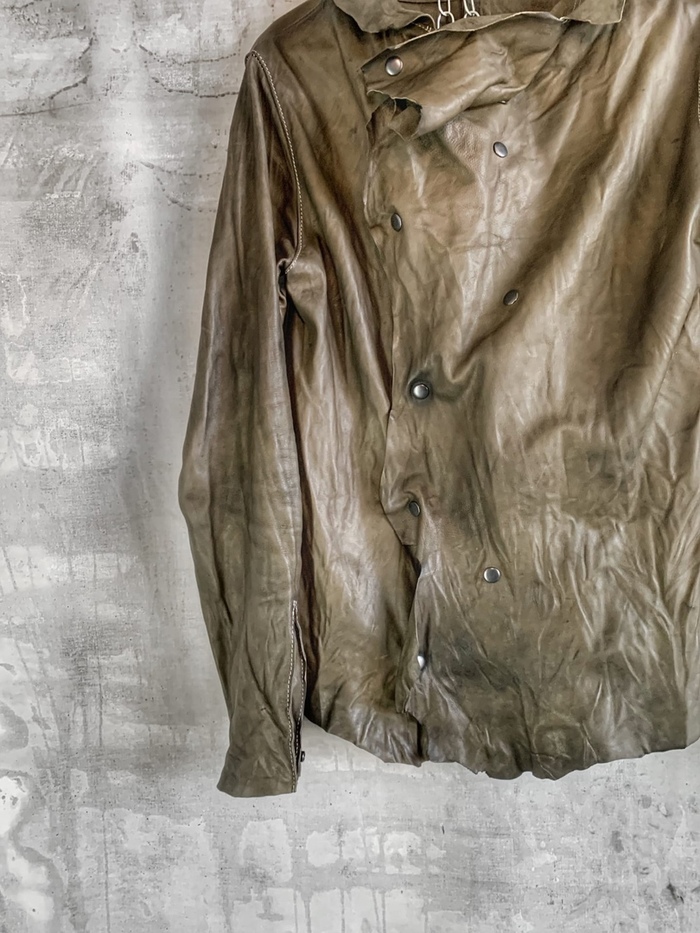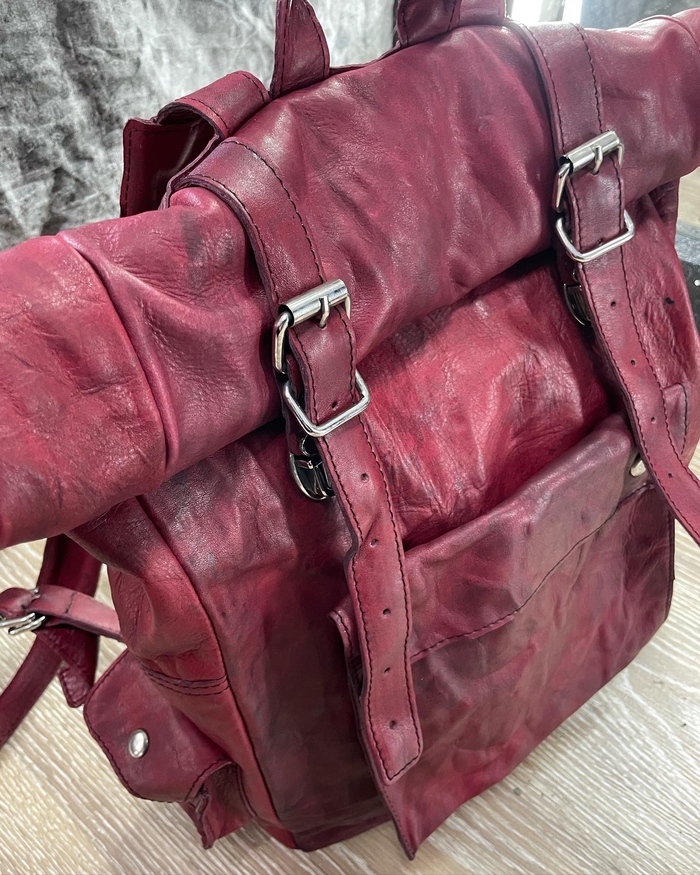 натуральная кожа растительного дубления, тончайше - мягчайшей выделки в купе с граффити краской некоторого дорого бренда.