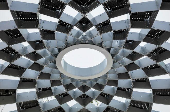 Конструкция способна генерировать до 1,2 кВт мощности — этого достаточно, чтобы обеспечивать освещение и работу инфраструктуры вокруг павильона после наступления темноты.