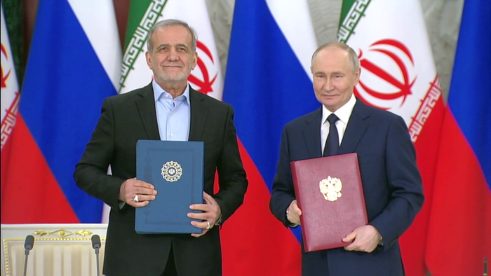 Искренне рад приветствовать в Москве Президента Исламской Республики Иран господина Масуда Пезешкиана, с которым мы только что завершили обстоятельные переговоры в рамках его официального визита в Россию.