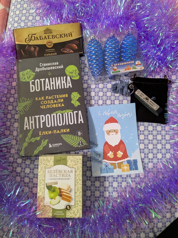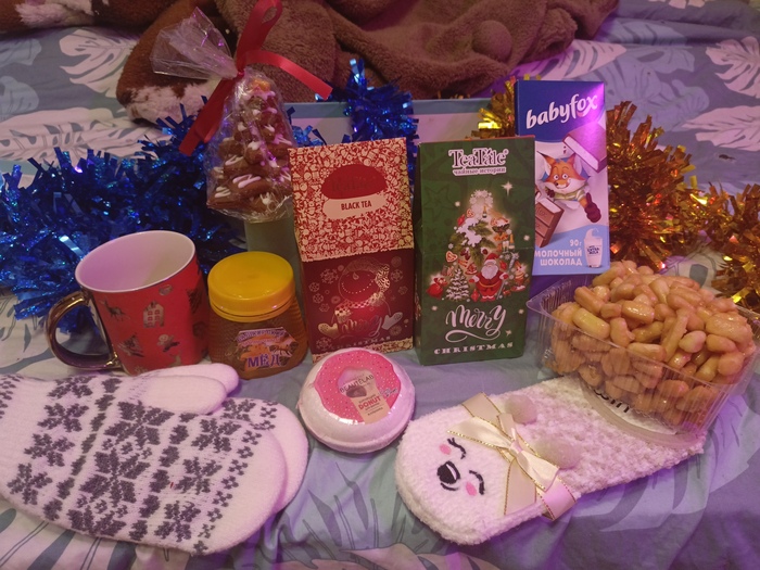 В общем большое спасибо Дед Морозу Антону и Снегурочке Вики за такой прекрасный и душевный подарок. Яркая упаковка, забавные надписи и оригинальная идея: получилось, что каждый подарок (кроме подарков для животных (отдельное спасибо, что и они по подарку получили и не обделены вниманием)) связан и переплетается с другим, как пазл, затем складываясь в единое целое и когда я это поняла , я просто в шоке была, что так можно придумать и сделать. И конечно, благодаря такому подарку, получен и заряд новогоднего настроения и заряд прекрасного настроения и заряд на любые свершения🤓🎄