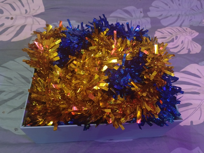 Встретила меня посылка письмом с предложением сыграть в игру и мишурой.