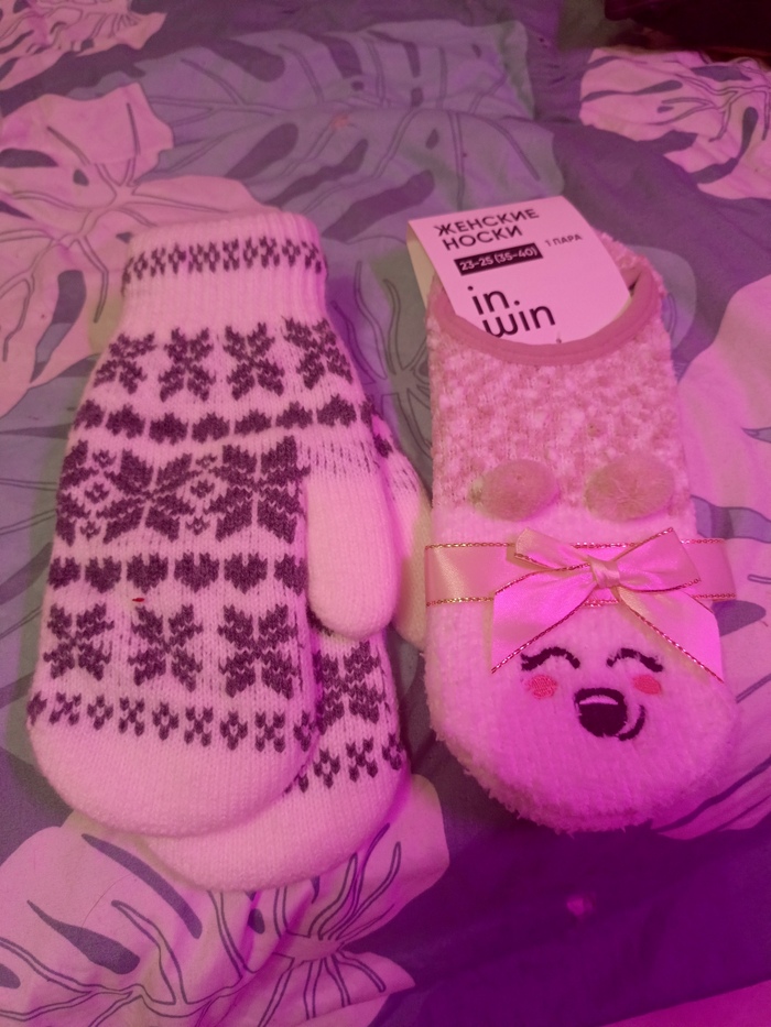 Ну и в завершение милейшие носочки и тёплые варежки) Как я писала в анкете - "на улице мёрзнут руки, а дома - ноги". У меня уже сложилась традиция - встречать Новый Год в новых, подаренных носках, надену их сегодня же и встречу в них праздник)