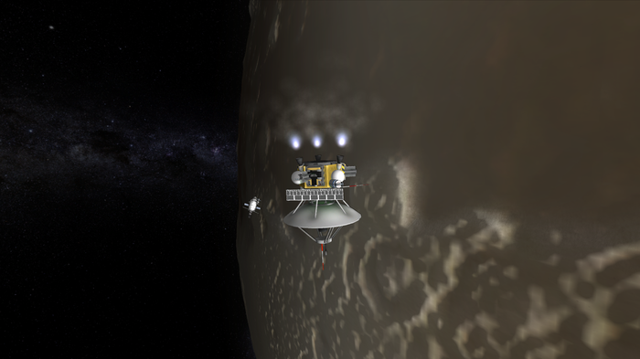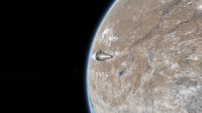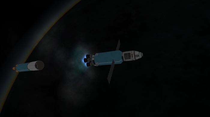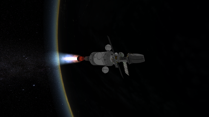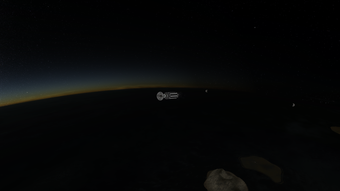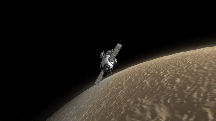 Затем произведена дозаправка "Сирены-2" монотопливом от "Аполло-2", вывод связки "Аполло-2"-"Сирена-2" двигателями "Аполло" на эллиптическую орбиту, съем науки и возвращение связки на НОО Цети. После чего заправленный от "Аполло-2" модуль "Сирена-2" ( вся серия "Сирена" - монопропеллентная) остался ждать посадочную миссию, а "Аполло-2" вернулся на Гаэль. Минус посадки "директ брейком" с Цети - экипаж гарантированно вырубается от перегрузок.