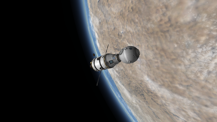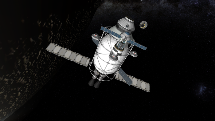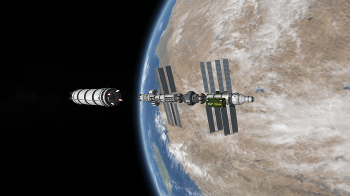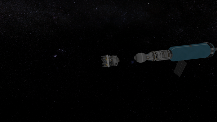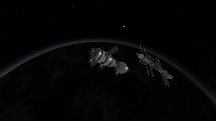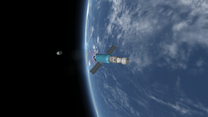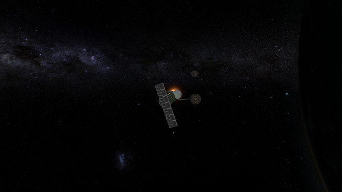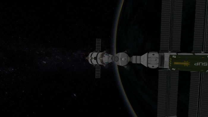 Перелет прошел удачно, правда, на этапе сближения я врубил одной из солнечных панелей "Аполло-3" по корпусу "Сирены-2", в связи с чем панели пришел толстый полярный лис. Но не страшно, есть вторая панель, есть резервный РИТЭГ, их хватает на работу СЖО и САС. Как обычно, пилот вышел в открытый космос и пристыковал "Сирену-2" к "Аполло-3", чтобы ученому не лезть в космос лишний раз. Затем пилот перешел в "Аполло-3" и подал команду на расстыковку.
