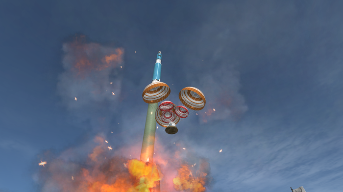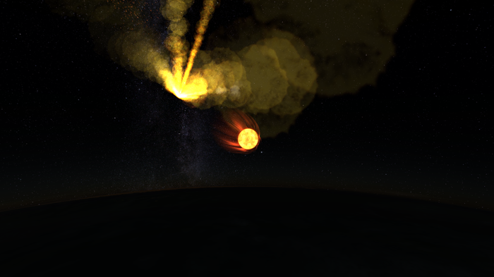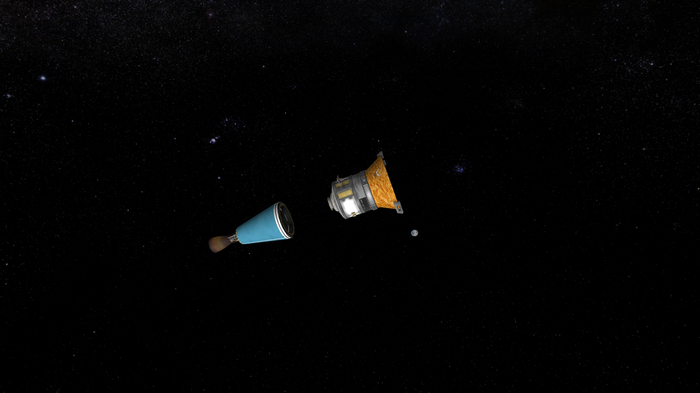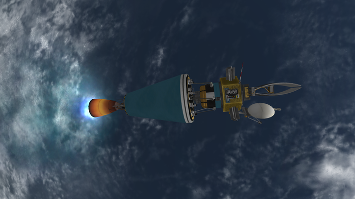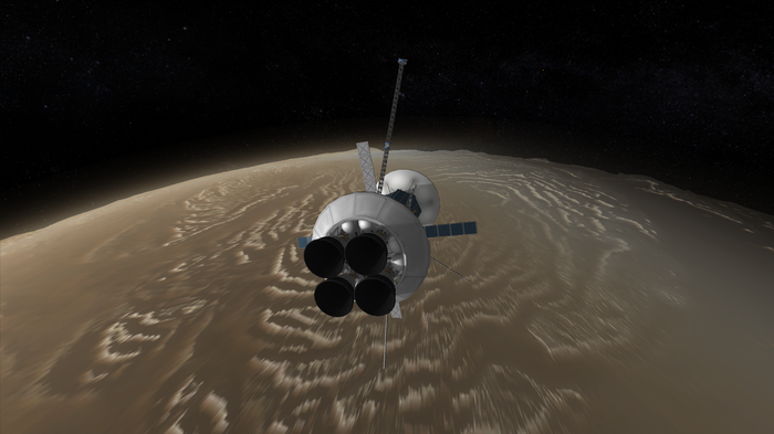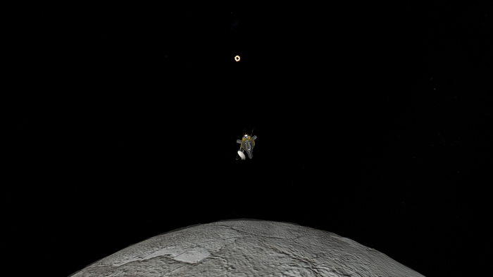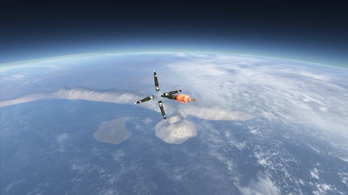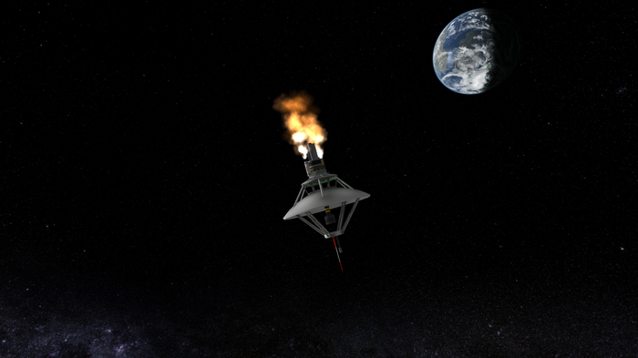 После удачной высадки на Йоту мне предложили вернуть с поверхности Йоты какой-нибудь ранее посаженный объект. Не вопрос, подумал я, и построил возвратный зонд на базе посадочного, лишь слегка модернизировал, добавив дельты. Вывод был удачным, всё тем же "Орлом-7", перелет тоже, но ровно на моменте выхода на орбиту Йоты BARIS решил, что хорошего понемножку и организовал утечку из одного бака посадочно-взлетной ступени.