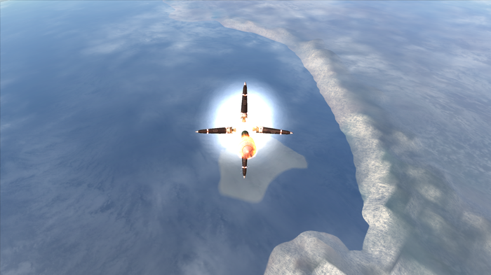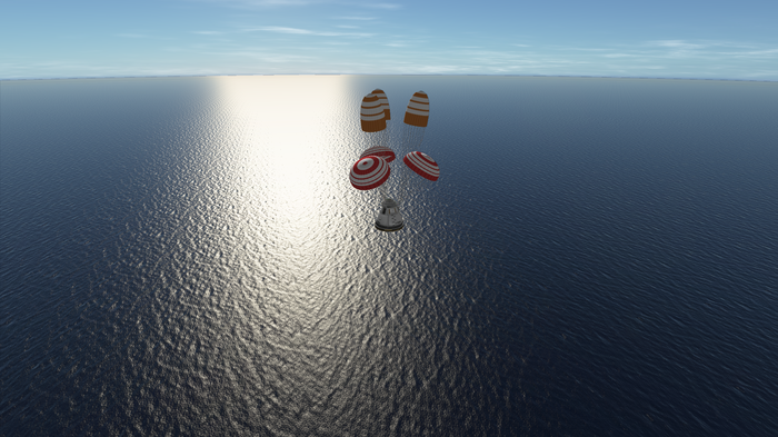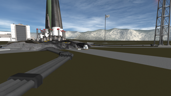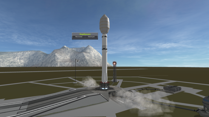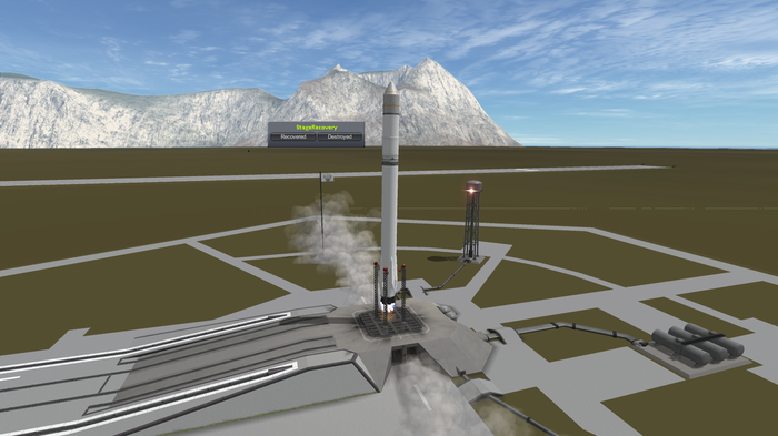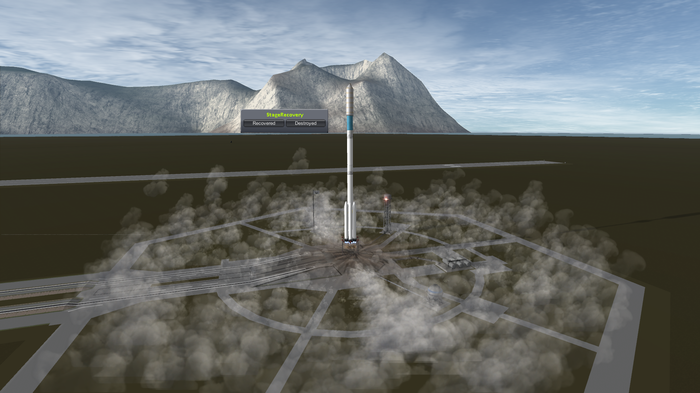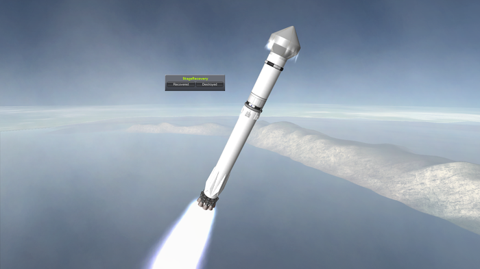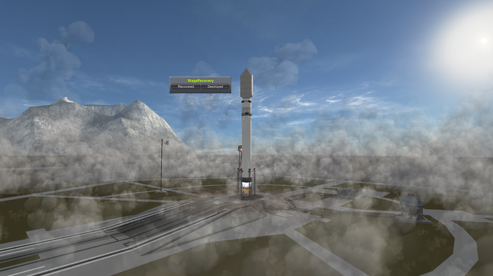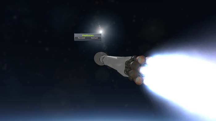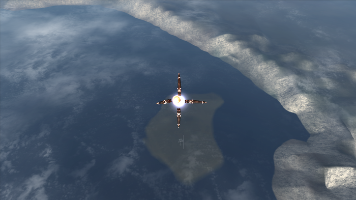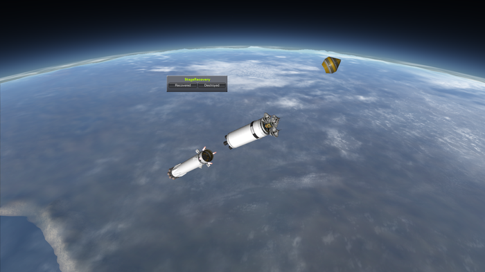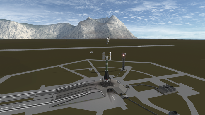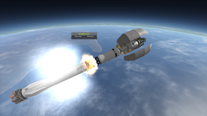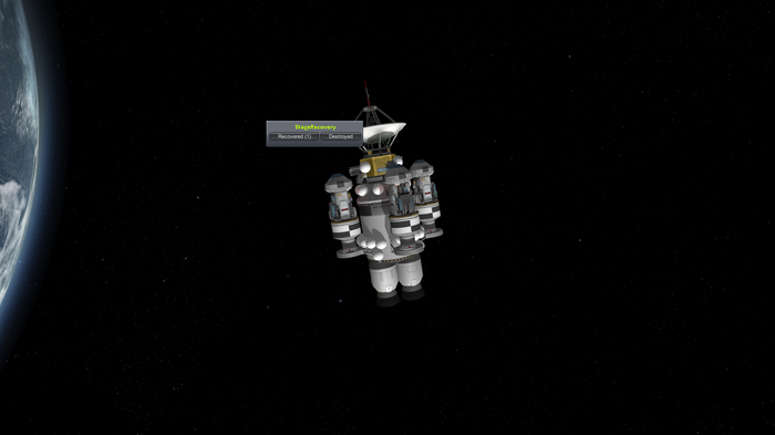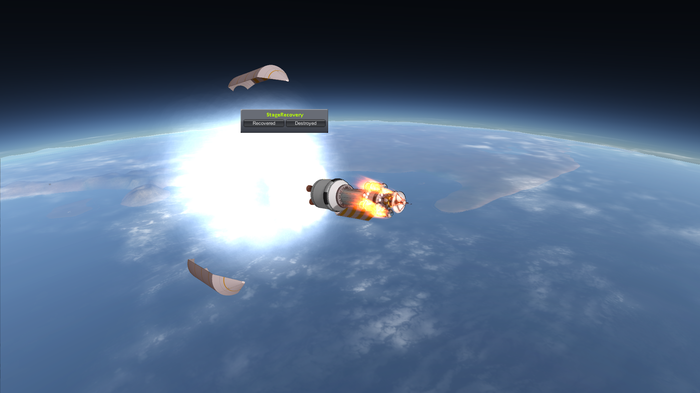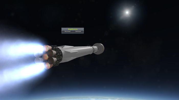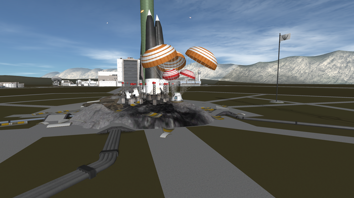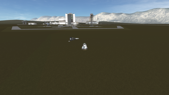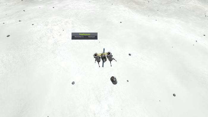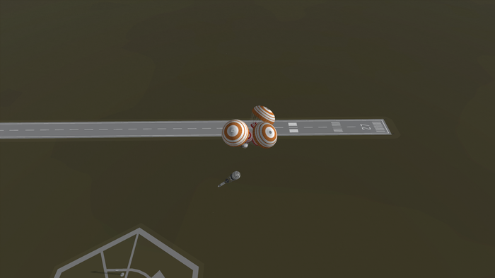 В итоге я практически полностью сел на перелетном блоке, сбросив его перед самым касанием, и сел на взлетно-посадочной ступени. От переворота меня спас мехджеб с режимом дифференциальной тяги.