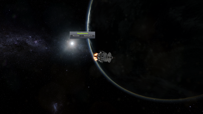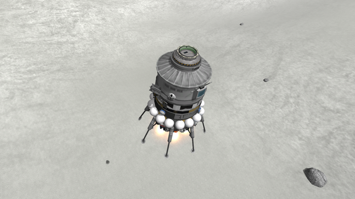 Начнись утечка на пять минут позже - и я бы испытал эпик фейл, потому что сбросил бы перелетную ступень. Но мы же кербальские инженегры! Не хватает дельты на посадку и взлет? Будем садиться на перелетном блоке, в нем ещё осталась дельта!