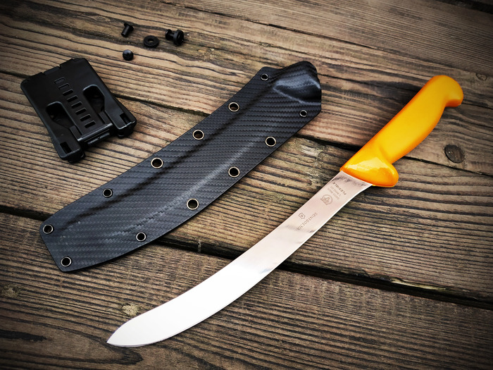 Для меня данный представитель «кухонников» стал небольшим открытием! И я, честно говоря, не думал, что нож настолько популярен среди рыбаков и охотников. Данный филейник хорошо себя зарекомендовал на кухне, в походе, на рыбалке, особенно при работе с мясом (разделка мяса, обрезка от лишнего жира и т. п.). Однако у этого инструмента есть один недостаток – отсутствие ножен! Возникает ряд трудностей при его переноске в поклаже.
