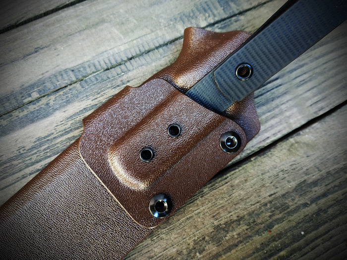 Форма ножен позволяет надежно зафиксировать посаженый в них нож.