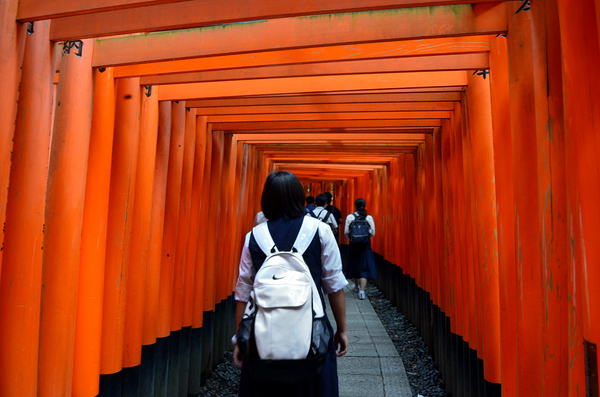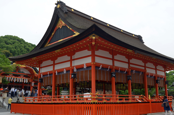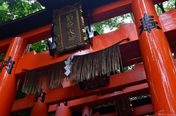 Центральный храм богини Инари, храм 10000 ворот, расположенный на краю Киото. Вернее это целый комплекс на горе, который не каждый осилит обходить. Представляет из себя центральный вход с главными зданиями и круговую дорогу по горе, с ответвлениями, украшенную воротами Тории.
