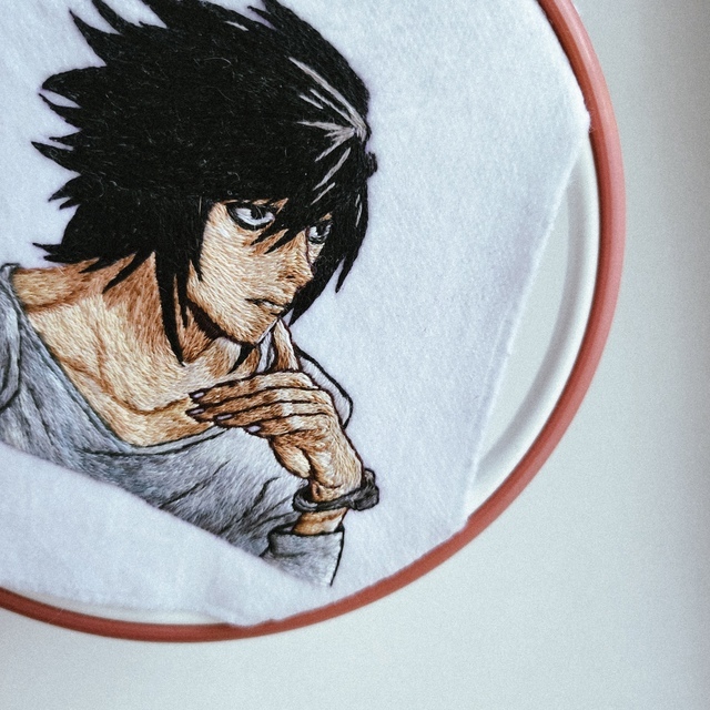 [моё] Аниме Death Note Вышивка Ручная работа Вышивка гладью Народное творчество Рукоделие без процесса Рукоделие Длиннопост L Lawliet