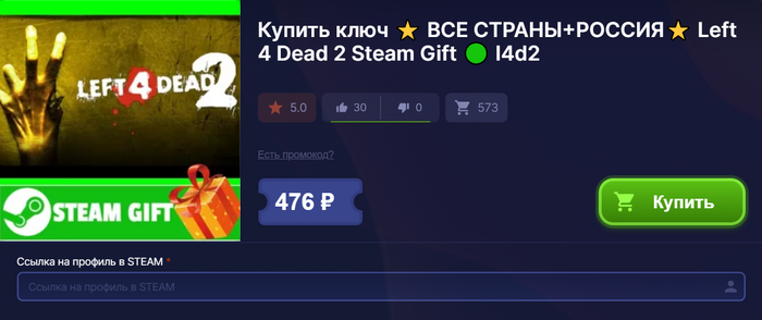 Переходим в категорию Left 4 Dead 2 и выбираем подходящий товар. Также, как и в предыдущем способе, смотрим на его критерии, внимательно читаем описание и оплачиваем.