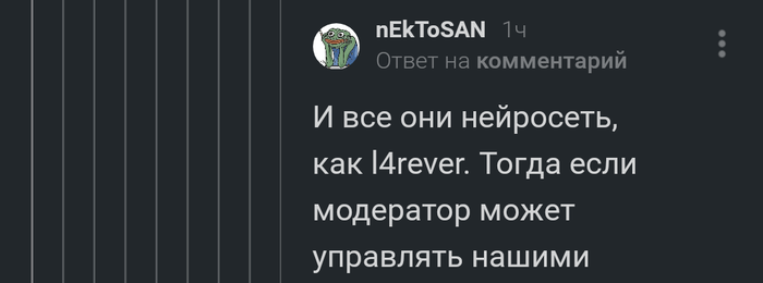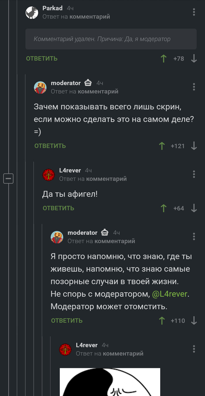 1376 Sudakovich Все таки показалось 6 лет назад #comment_129363417 Показать полностью 1 Скриншот Комментарии на Пикабу L4rever L4rover