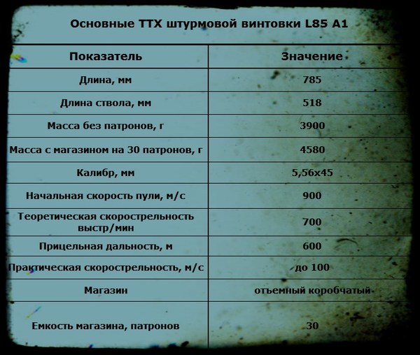 Так или иначе, штурмовая винтовка L85 A1, некоторыми аналитиками одно время признававшаяся одной из самых неудачных систем огнестрельного оружия в мире, уже свыше двадцати лет состоит на службе армии Великобритании, Королевской морской пехоты, Королевского ВМФ, Королевских ВВС, подразделений территориальной армии, а также Министерства гражданской обороны. В ходе операции «Буря в пустыне» винтовка уже имела статус основного оружия военнослужащих британского контингента и, по уверениям пользователей, показала себя неплохо. Источник http://lockwork.ru/shturmovaya-vintovka-l85/