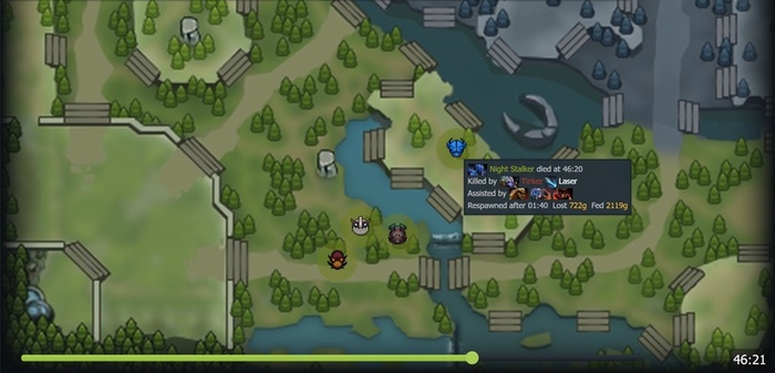 45-я минута. ВКИ НГУ (В) проваливают позиционку в нижнем лесу, теряя четверых — Клок, ТеррорБлейд, ШД, НайтСталкер. ВКИ НГУ (А) моментально захватывают преимущество: -11k по голде в пользу "Ашек" к 50-й минуте. И казалось бы — всё.