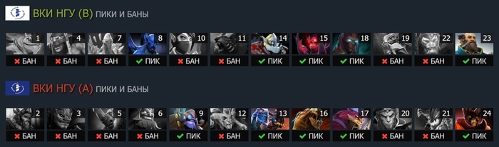 ВКИ НГУ (В) — Кунка мид, НайтСталкер офф, ТеррорБлейд на керри, и Шадоу Демон с Клокверком в саппортах.