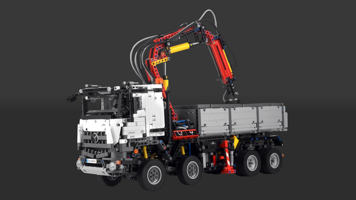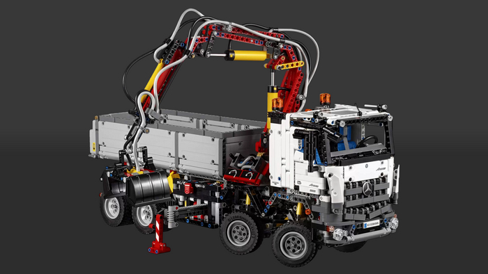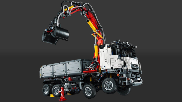 В модели используется очень много система для отделки, а массивный капот и бампер полностью состоят из него, но вопреки опасениям все держится отлично, ничего не отламывается и не болтается в движении. В итоге мы имеем огромную и очень красивую модель, с реалистичными функциями ( подъем-опускание кузова с автоматическим открытием борта, поворот кабины, передние и задние фары, работающий при движении двигатель). Качество пластика на высоте, царапин на деталях почти нет, цвета насыщенные, прозрачные детали не мутные. Сама модель монолитная, крепкая. Я на все сто остался доволен подарком. цена этого набора 10-12 тысяч на маркетплейсах, что очень неплохо на мой взгляд.
