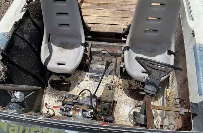 Помимо этого, к NautiTruck приделана деревянная грузовая платформа, а еще внутри установлено два пластиковых кресла, рваный диван и дуга безопасности. Оценен странный проект соответствующе: стартовая цена этого лота составляет всего $1700.