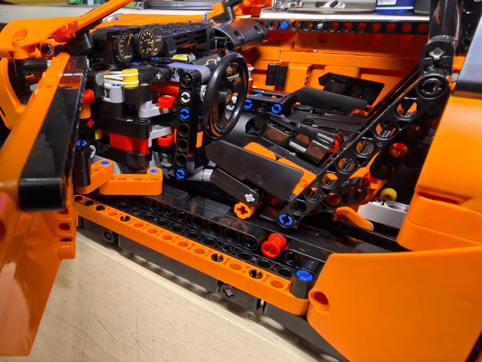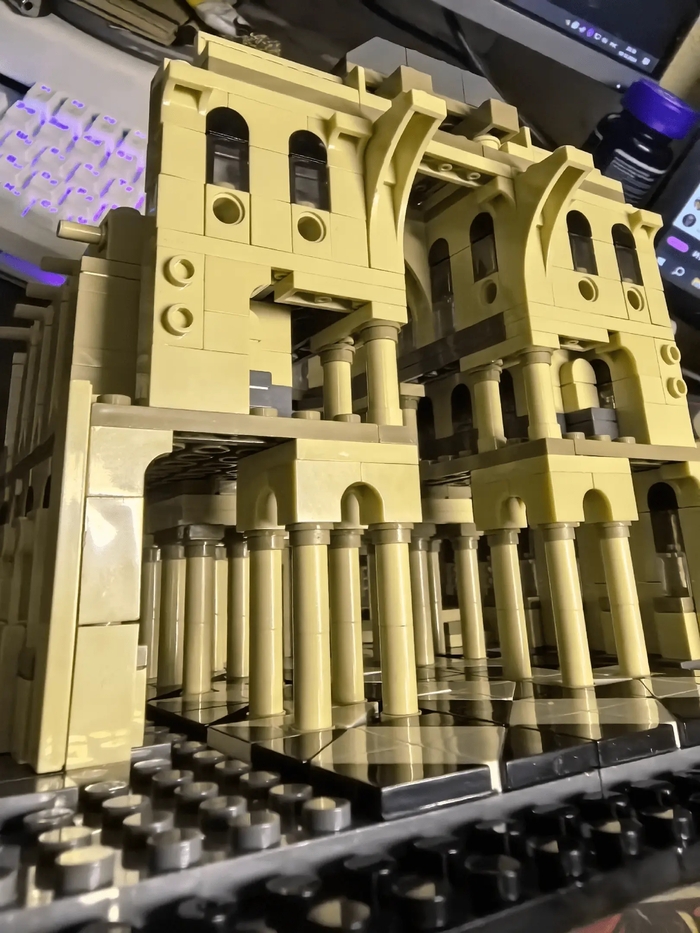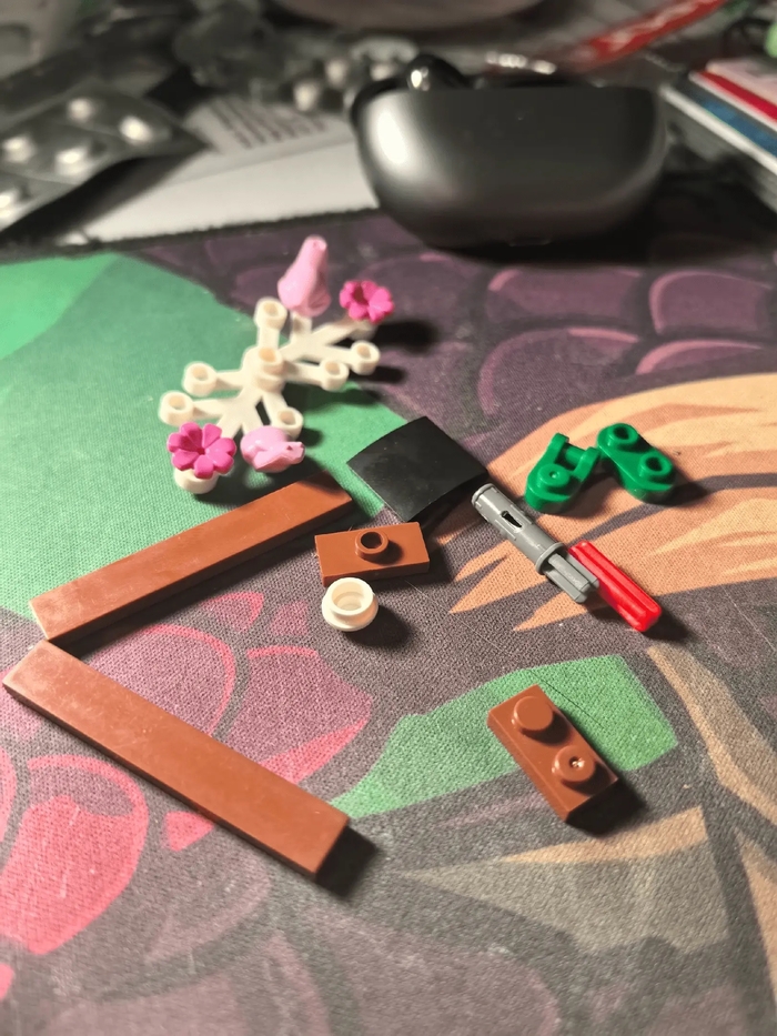 Кстати, именно в этой части я первый раз столкнулся с тем, что «Лего» перепутали детали. Реально, ни разу за 30 лет сборки этих конструкторов я не встречал ничего подобного, но здесь, вместо голубой плашки, призванной стать окнами небоскрёба у меня оказался коричневый объёмный уголок, который вообще никаким образом не клеился с этим набором. Пришлось выкручиваться и кое-как латать дыру запасными плашками разного цвета. Вот так вот бывает, даже «Лего» иногда косячат.