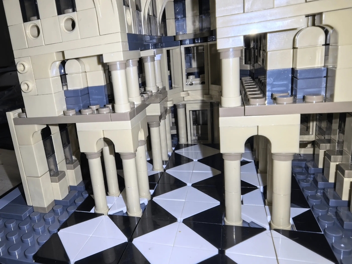 Двигаясь дальше, мы оказываемся у небоскрёба «Gothcorp», где внутри нас уже поджидает мистер Фриз рядом с анабиозной камерой своей жены, а также бесстрашная Саммер Глисон, ведущая репортаж. Из прикольных деталей можно отметить ледяные узоры из белых пластинок «Лего» по всему зданию. Рядом с небоскрёбом находится здание готемской Оперы, на сцене которой представление устраивает сам Пингвин.