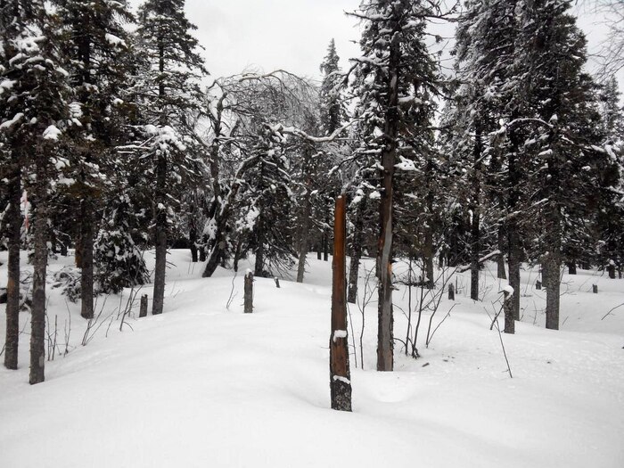 Девчонок мы сразу отправили греться к леснику, а сами занялись растопкой печи и сушкой вещей. Вечер прошел в тепле и уюте. Мы сразу уточнили есть ли нам смысл двигаться дальше, нас уверили что, если мы вывезем путь, отогреться и поспать нам место найдут другие смотрители. Мы высушили все вещи, поужинали, и на утро были готовы к новым свершениям. Путь должен был быть в сторону метеостанции с заходом на одну из вершин. При попытке штурма вершины, мы достаточно быстро осознали, что успехом он не закончится. Вы когда-нибудь проваливались по шею в снег? Я вырос на севере, я знаю что такое зима 9 месяцев в году и мороз -50, и до похода, я бы ответил на этот вопрос - нет) А после похода, я так ответить уже не мог, мы быстро ретировались и направились в сторону метеостанции, ситуация усложнялась тем, что дорогу периодически пересекали ручейки и речушки, которые также завалило снегом и неудачно ступив, можно было не просто уйти под снег, а оказаться в реке)