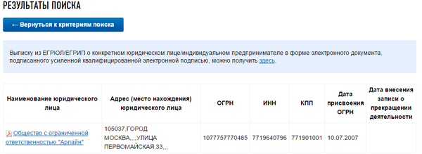 Возвращаемся к сайту и ищем по ОГРН 1077757770485, указанное в предыдущем документе.