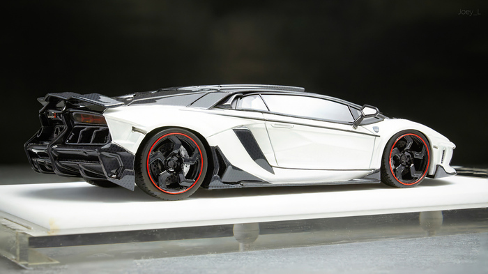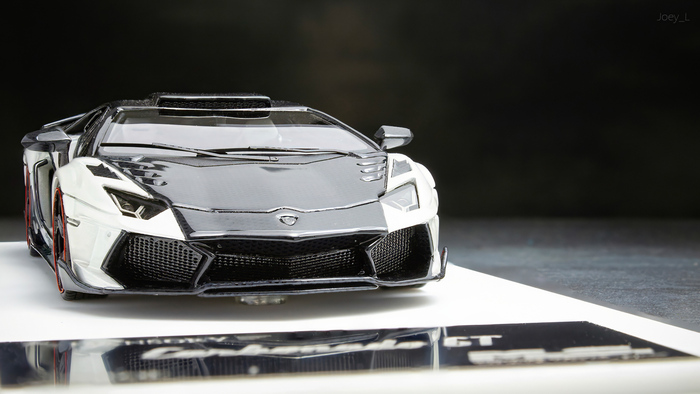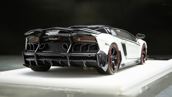 Модель от M.S., они же Miniatures Specials, они же Davis&Giovanni, как и всегда выполнена потрясающе. Красивая смоляная модель, сделанная без лицензии Lamborghini, в связи с чем неофициальная и очень редкая, выполнена специалистами по миниатюрным тюнингованным Ламбам. Безупречная покраска, невероятная чёткость линий, качественная геометрия, приятный большой бокс из оргстекла – великолепный экземпляр в коллекцию.