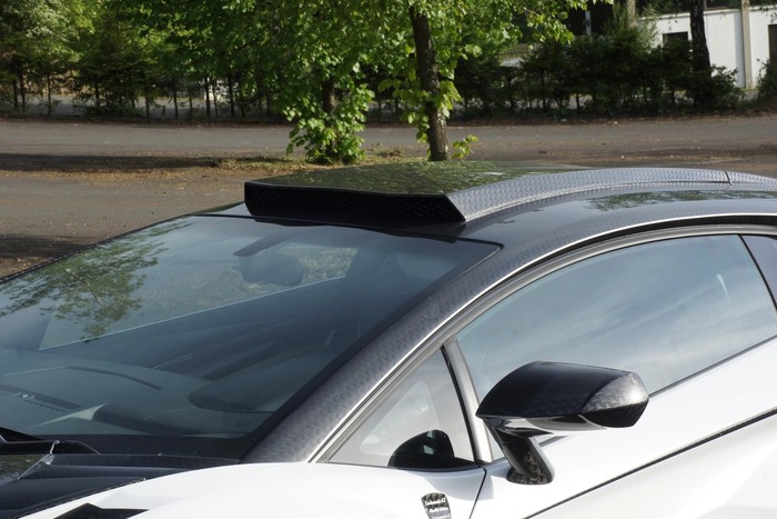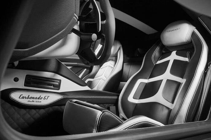 Главная фишка серии Carbonado — это уникальный метод плетения углеродного волокна. Mansory разработали запатентованный рисунок «Stealth-Carbon», отсылающий к форме американского истребителя-невидимки Lockheed Nighthawk. Кузов стал шире на 40 мм спереди и на 50 мм сзади за счет новых крыльев. Передний бампер получил оптимизированные воздухозаборники для охлаждения тормозов, добавлена «губа» сплиттера, а сзади появилось массивное антикрыло и новый диффузор, крыша и крышка моторного отсека заменены на карбоновые. Главное отличие версии GT — это функциональный воздухозаборник на крыше, который направляет воздух прямо в моторный отсек.