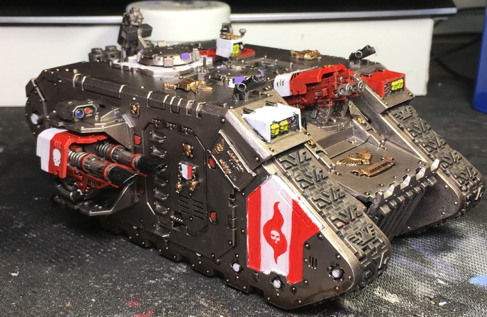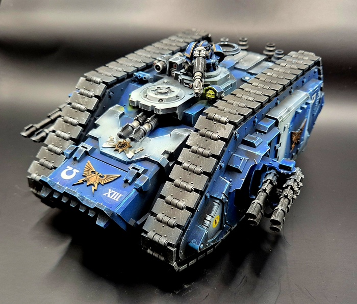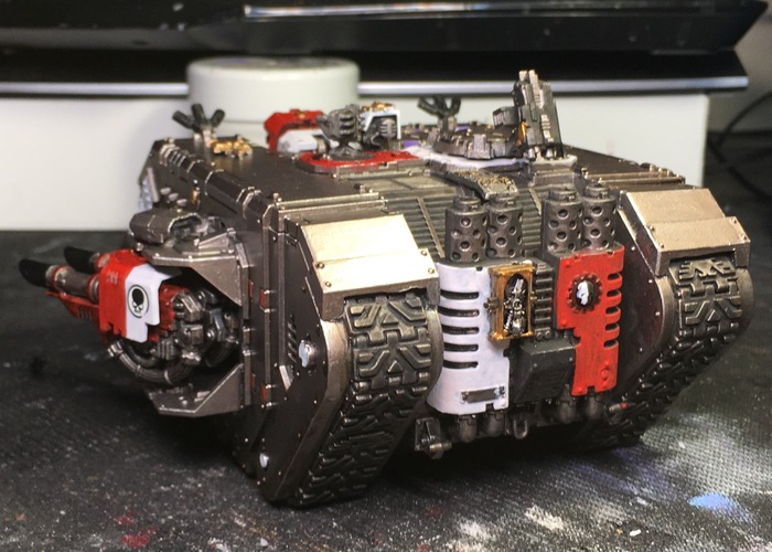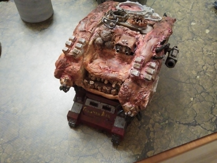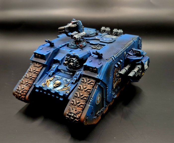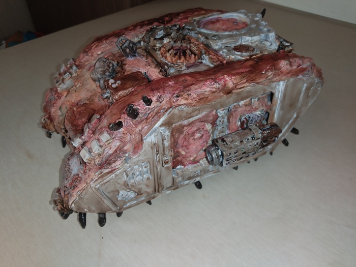 Вашему вниманию Лендрейдер лояльного ордена "Громовое око" сделанный из обрезков пвх с помойки, спичечных коробков, крышек от дошика, пластиковой папки для документов, траков от Т-34 и кривых литых битсов собранных как милостыня.