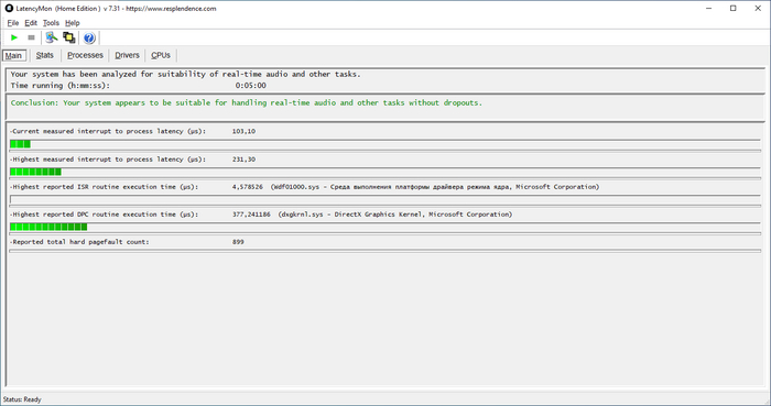 NOTE: some processes were hit by hard pagefaults. If these were programs producing audio, they are likely to interrupt the audio stream resulting in dropouts, clicks and pops. Check the Processes tab to see which programs were hit.