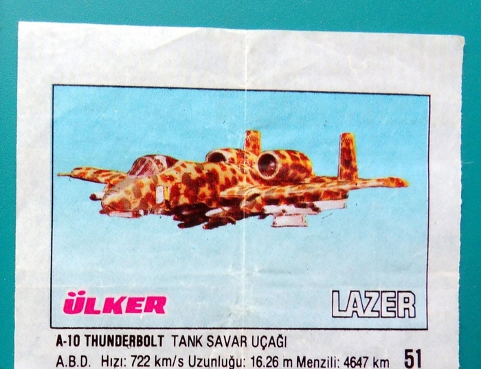 Вкладыши Lazer. Военная техника. Хотя такие жвачки продавались довольно широко, но коллекционеров почти не встречал. Но все равно удалось собрать почти всё. Не хватает только №19. Всего в серии 70 номеров. Примечательно, что первые четыре номера в каждой десятке посвящены самолетам. Номера, кончающиеся на 5 и 6, вертолетам. На 7, 8 и 9 – бронетехнике. А вот 10, 20… 70 – кораблям.