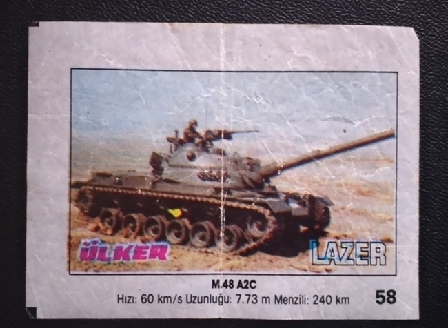 Вот теперь подхожу к главному. Из-за чего и решил этот пост запилить. Хотя у меня нет №19, зато №59 представлен аж двумя вкладышами. На обоих бронетехника, но разная. И надписи на вкладышах немного отличаются дизайном.