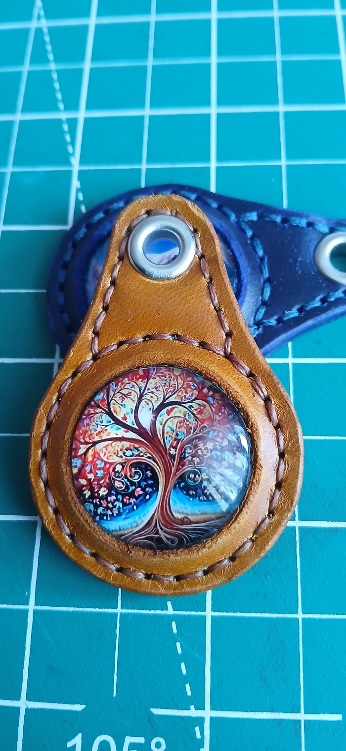 Сшила на выходных вот) натуральная кожа КРС 2 мм, дреды из полиэфирного шнура, бусины металл, кольцо крепкое, давно такие использую для брелоков. Есть мысль выкройку увеличить и на ручку КПП такого сшить.
