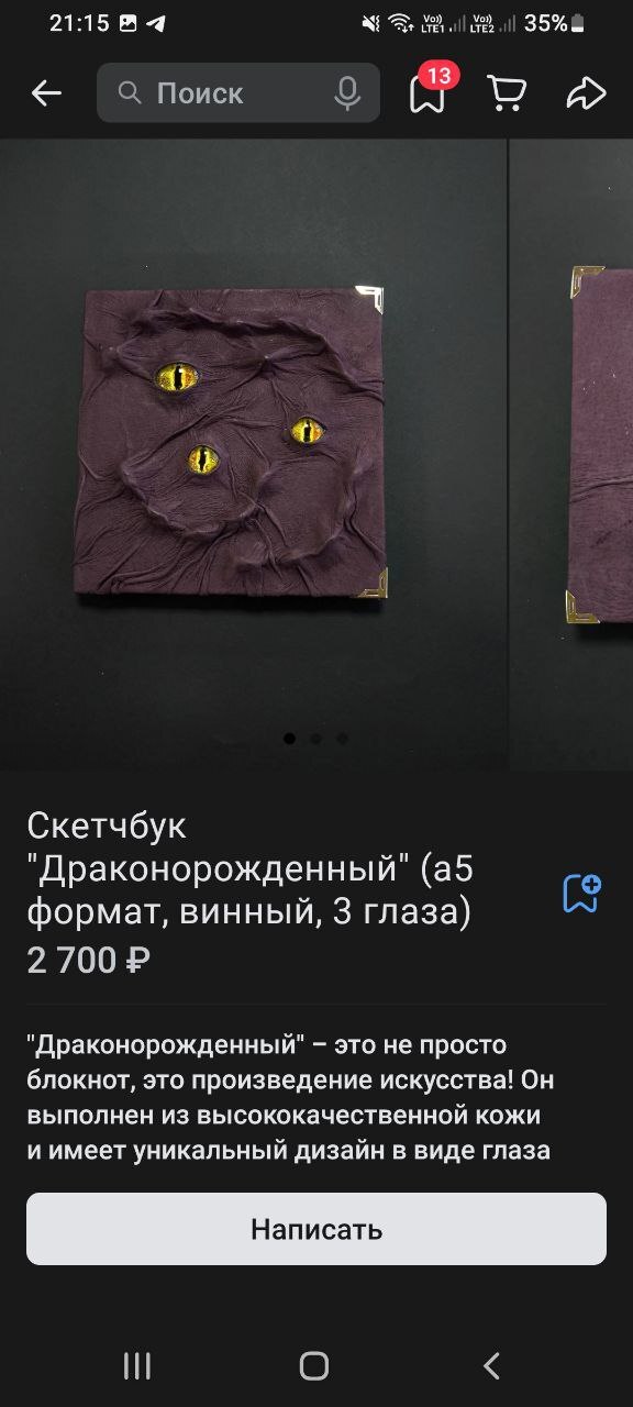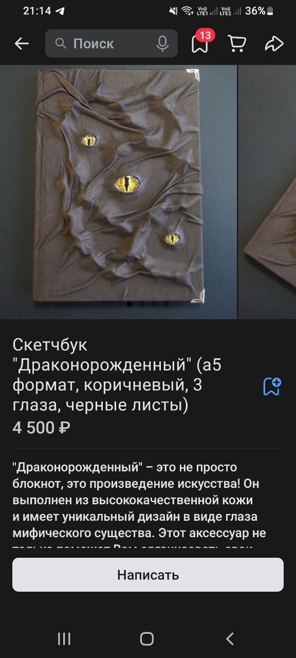 Довольно скоро в товарах моих товарищей стали появляться кожаные блокноты, один-в-один скопированные с моих "Вечных" - разъёмные кольца, люверсы, уголки. Картинки только были выжжены лазером. Я ничего по этому поводу не думала, кроме как "Ну, идея-то не новая, чо уж".