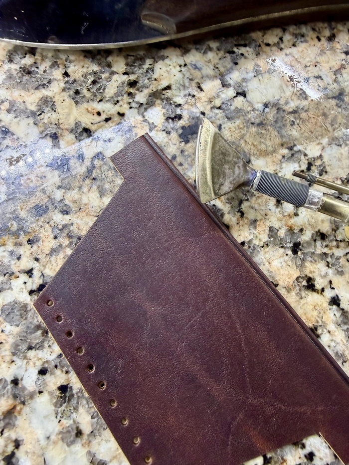 В обоих случаях это краст примерно 1.2 мм, покрашен, финиширован вручную. Нитки Винимо, пробойники «французы» 5 мм.