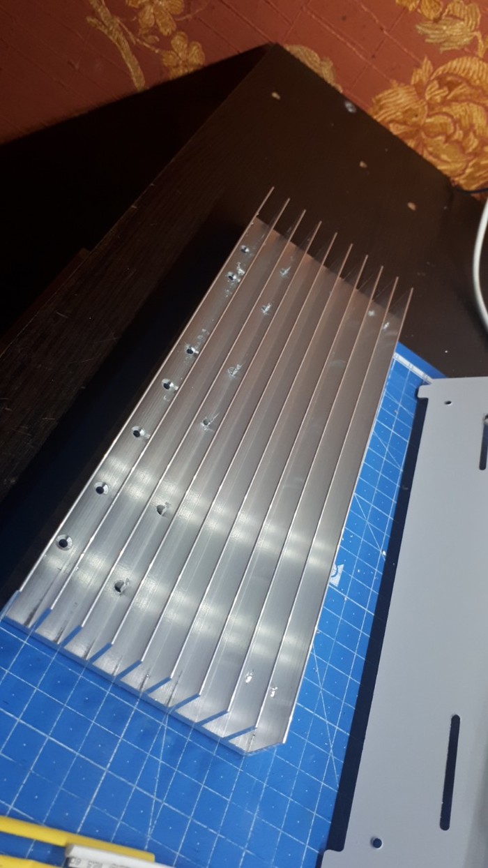 Берем наши модули, берем DIN-рейку 22.5см длиной, просверливаем в модулях отверстия М5 для винтов и фиксируем их гайками