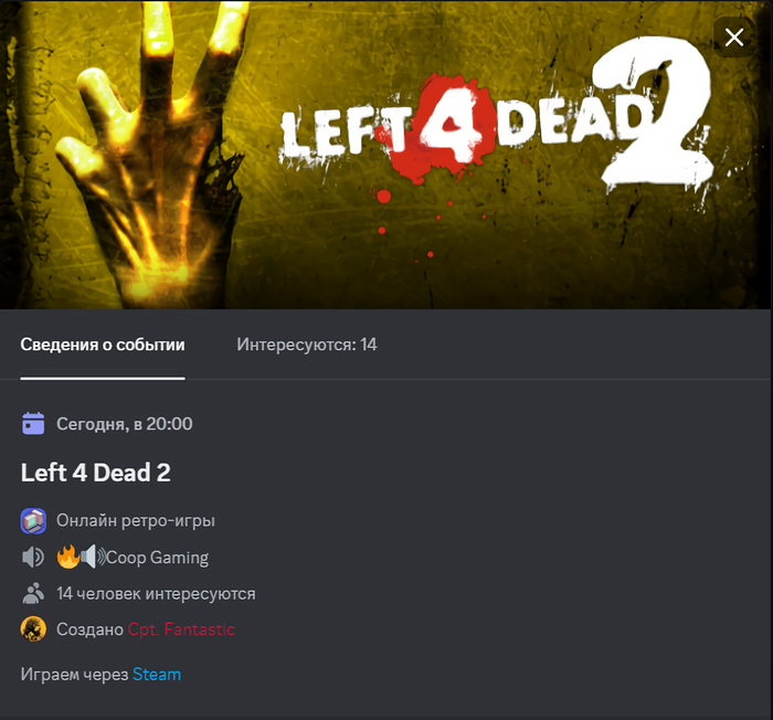 Сегодня день кооп игр, решили собраться в Left 4 Dead, PVP режим. Играем через Steam. Кто желает, присоединяйтесь. Взаимодействуем через голос Дискорда, можно без микрофона. Одно лобби до 8 игроков.