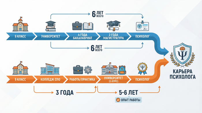 Колледж — это не потеря времени, а фундамент. Вы получаете прикладную профессию, начинаете зарабатывать раньше сверстников и подходите к университетскому курсу клинической психологии с багажом реальных знаний.