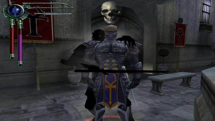 Итак, с лирическим отступлением покончено - пошарившись немного по цитадели ордена Сарафан, Разиэль натыкается не только на статуе себе любимому и своим братьям, но и на могилу Уильяма Справедливого, павшего в битве с Каином. На его могиле покоится разломанный в бою Похититель Душ. А так же самого Каина, который объясняет Разиэлю что всё что он сделал был крайне хитрый план, по тому как восстановить колонны и Make Nosgoth Great Again! А для этого ему нужен тот единственный кто обладает собственной волей и не связан предопределённостью