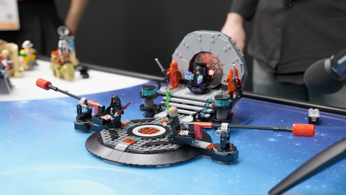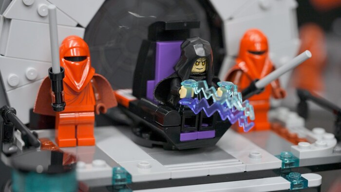 прикол с Палпатином и имперским маршем (еще в этом наборе при наличии Дарта Вейдера у трона они начинают друг с другом щебетать, забавно);